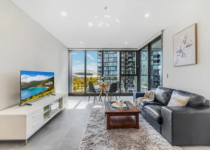 The 2-room Brand New Apt In Olympic Park Near Stadium Sydney is located a mere 1.5 km from the Sydney Olympic Park and approximately a 25-minute walk from the Brickpit Ring Walk. Offering access to a private swimming pool, this 90 m² apartment is just steps from ANZ Multi-Purpose Stadium.